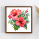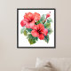 Watercolor Red Bright Hibiscus Blommigt Greenery Poster