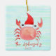 Watercolor Red Crab Santa Hat Beach jul Julgransprydnad Keramik