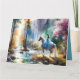 This artwork presents a luminous watercolor scene of a solitary horsewoman moving through a glowing forest river, wrapped in calm motion and quiet wonder. Soft washes of blue, teal, and misty green blend with warm golden light filtering through tall trees, creating a gentle balance between serenity and forward movement. The flowing water and layered foliage add a sense of rhythm, while pastel florals and airy brushstrokes lend a whimsical, cottagecore charm. Romantic and slightly ethereal, the composition feels like a moment suspended in time, inviting reflection, wanderlust, and a deep connection to nature. The overall aesthetic is dreamy, folk-inspired, and soothing, with a graceful narrative that feels both peaceful and adventurous. AI generated artwork.