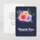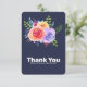 Ett tack från party (eller andra tillfälle) till ett kort med en fin bukett av ro med vattenfärg, med sprit, löv och grenar i en arrangemang färgad blommigt. Blåblå bakgrund.