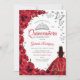 Watercolor Röd ros Silver Quinceanera Inbjudningar