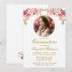 Modern Elegant Round Photo Ram Quinceanera Watercolor Rosa Blommigt Guld inbjudningskort