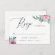 Watercolor rosa boho blommigt script bröllop OSA kort