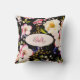 Watercolor Rosa Gul ros on black, Monogram Kudde