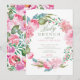 Vacker brunchinbjudan till babydusch med en vattenfärgad peonies blommigt-krans med en koordinerande blomma tillbaka för en extra-speciell beröring.
