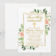 Modern Elegant Watercolor Rosa Blommigt First Heliga Communion bjudation omfattar rosa ros, eukalyptus löv och andra vackra botaniska grönområden. Guld Kor.