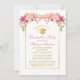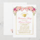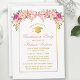 Elegant Watercolor Pink White Floral Graduation Party Invitation includes pink roses and greenery. Pink Blush Coquette Bow Ribbon. Gold Frame. Modern Calligraphy Script. Gold Grad Cap.