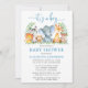 Watercolor Safari Animals Blue Script Boy Shower Inbjudningar