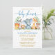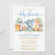 Watercolor Safari Animals Blue Script Shower Guld Inbjudningar