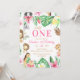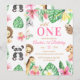 Celebrate your little one's first milestone with this adorable "Wild One" safari-themed birthday invitation. Featuring hand-painted watercolor jungle animals including a lion, tiger, giraffe, panda, and sloth, surrounded by lush tropical greenery and vibrant pink flowers. This sweet and whimsical design is perfect for a girl's 1st birthday party. All text is 100% customizable, allowing you to easily add your party details. High-quality print and professional design for a memorable celebration!