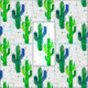 En ljusstark roligt som dekoreras med saguaro cactus illustrerad med vattenfärg i skuggor av grönt och blå med en spatterbakgrund. Färgstark för hemdekor och hantverk. Underbar för dem som bor i öknen!