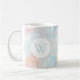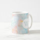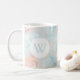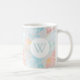 Vattenfärgssäsongsbundet mönster monogram mugg i havs- och solnedgång.