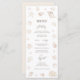 This wedding menu features soft watercolor seashell and pearl illustrations arranged in a light, airy composition with a refined coastal feel. The neutral palette and delicate detailing create an elegant beach-inspired nautical aesthetic that feels timeless rather than themed. Balanced typography and gentle watercolor textures make it an ideal match for romantic seaside, coastal, and destination weddings with a sophisticated, understated style.