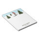 Stay organized in style with this watercolor ski-themed notepad, featuring Destei's original design of a woman skiing among fir trees under a snowy blue sky. The bottom includes two personalizable text areas for a name and job title, perfect for ski instructors, coaches or winter sports professionals. The subtle slope and skier design adds seasonal feel without overwhelming your notes, making it a practical and visually appealing accessory for home, lodge or the office.