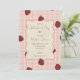 Watercolor Strawberries on Pink Grid- Valentine Inbjudningar