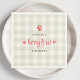 Anpassningsbar-designad flickas första födelsedagsfest pappra blöjor med "berry first", modernt handskript med vattenfärgade jordgubbar och mjuk buffelcheckdesign.
