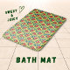 Shower Freshness Bath Mat - Watercolor Strawberry Blueberry Pattern on a yellow Background - is an ai generated design and shows a seamless repeating fruity pattern with red Strawberries, blue Blueberries and green Leaves.
