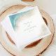 These elegant summer coastal destination wedding reception napkins feature a hand painted watercolor beach scene in the corner with ocean waves lapping on the sea shore.