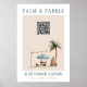This beach-inspired QR code sign features a hand-painted watercolor illustration of a charming surf cart scene with a palm tree, string lights, and colorful surfboards. Designed with a relaxed coastal aesthetic, it creates a welcoming way for guests or customers to quickly scan and book surf lessons.