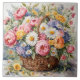 Watercolor Wicker Basket med sommarblommor Kakelplatta