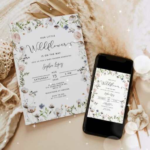 Watercolor wildblomma bokar för baby biljett tilläggskort