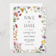 Det här sparar datumet med vattenfärgsvilda blommor som ordnats i gräns för att låta familj och vänner veta ditt bröllop-datum.