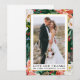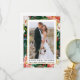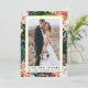 Elegant Watercolor Winter Blommigt och Greenery Bride och Groom Kärlek och Tack Bröllop Photo Tackor You Card innehåller röda poinsettias, vit ros, humlebär och botaniskt grönt. Guld Ram.