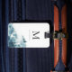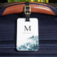 Modern och klassisk bagagemärkning med vattenfärgad illustration av en blå vinterskog. Anpassa genom att lägga till initialer, namn och adress. Det här blir perfekt som personlig.