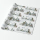 En julklapp som är papper och som innehåller en skogsplats med vattenfärgad grisen och gräs träd med himlar och renbete och hjort i skogen.