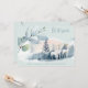 Julfest-inbjudan | Storfärgad trädbeläggning med snö täckt vindruta och tre magiska vita hjortar - söt vinter-blommigt sprey på baksidan - ren elegans. Detta är en del av Watercolor Woodland Hjort Collection by WhimsicalArtwork™