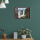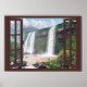 Vackra vattenfall, faux fönsterscen, för en fönsterlös kontorsvägg. Roligt, realistiskt optisk illusionsscenk poster för ett kontor eller en studiekur.