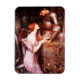 John William Waterhouse Lamia och Soldier Magnet. Oljemålning på arbetsyta från 1906. John Waterhouse skildrade ofta mytologiskt figurer, och Lamia och soldaten är ett underbart exempel på hans kärlek av kvinnligt mytologiskt figurer. Lamia sitter vid fötterna på en soldat som klär sig i metall armor i en rosa klänning med ett orkskinn insvept om hennes arm och slösar. Ett vackert medeltida tag på ett klassiskt tema. En underbar gåva till fläkt av J.W. Waterhouse, grekisk mytologi, Pre-Raphaelites, engelsk romsk målning.