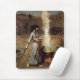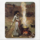 Den John William waterhousen magin cirklar musen vadderar. Oljemålning på kanfas från 1886. Den Pre-RaphaelitemålareJohn waterhousen drog regelbundet från litterära och mythological teman. Magin cirklar fortsätter konstnärens tjusning med det övernaturligt och att visa en sorceress med mörkt hår som drar en magi, cirklar i smutsen med en trollspö. Ha på sig en blåttklänning som dekoreras med perserfigurer, står hon bredvid en kittel som röker ovanför det orange, och röda glödar av glöda avfyrar. Det närliggande svartravensstativ hålla ögonen på ritualen veckla upp. En underbar gåva för fläktar av J.W. Waterhouse, prena-Raphaelites, magin, svartkonsten och engelsk romantisk målning.