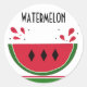 Ett stort segment av saftigt rött vattenmelon. Tre svarta diamantfrön med en stark grönt.