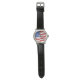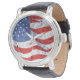 Den amerikanska flagga som viftar i vinden högljutt på en flagga som representerar frihet och rättvisa.