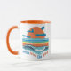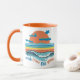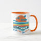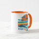 Ett kaffe mugg med en solnyårstid med vågbrytning, med frasen "Break from the Grind" centrerad nedanför bilden. Utformningen tyder på en uppfriskande och stimulerande flykt från de dagliga stressat.