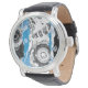 The Wave Mechanism – Custom eWatch brings abstract art into wearable technology. Symmetrical circular motifs evoke gears in motion, while the bold blue wave band flows across the center, balancing structure with fluidity.