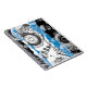 The Wave Mechanism – Custom Spiral Photo Notebook combines abstract art with personalized functionality. Symmetrical circular motifs evoke gears in motion, while the bold blue wave band flows across the center, balancing structure with fluidity.