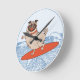 Wave ridning lycklig pug hund på yfboard rund klocka