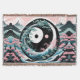 Svartvit yin-yang inspirerad, Blekens rosa och sage-grönt med en antydan om teal, blommigt bergslandskap Stora Wave Sol och måne AI skapade konst av minx267