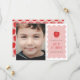 Fira ditt barns examen från förskolan med detta moderna och charmiga examensmeddelande. Framsidan av kortet visar en söt halvtone-illustration av ett äpple med en "Klass av (År)" text överlagd. Under illustrationen finns meddelandet "vår ögonsten", samt utrymme för namnet på ditt barn och deras skola. Texten och designen är placerad på en enfärgad rosa bakgrund, med en lekfull vit vågig ramkant. Denna inbjudan innehåller också utrymme för ett stort kundfoto. Baksidan av kortet har ett koordinerande halvtone-äpple-mönster.