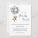 Fira din lilla en med denna söta teddybjörn-inspirerade inbjudan, med en söt björn som håller blå, bruna och vita ballonger, den är perfekt för en baby boy shower. mjuka färger, lekfulla typsnitt och anpassningsbara detaljer gör det enkelt att sätta tonen för en hjärtlig firande.
