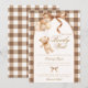 Bold and cozy, this we can bearly wait baby shower invitation is set against a deep dark brown gingham background with a sweet teddy bear and balloon detail. A stunning choice for a gender-neutral or neutral-toned teddy bear baby shower, this invitation brings a rich, warm aesthetic to the "we can bearly wait" theme that feels both modern and timeless.