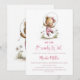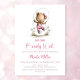 Celebrate the imminent arrival of your bundle of joy by inviting your friends and loved ones to your baby shower with this invitation featuring an adorable teddy bear wearing pink overalls playing jump rope.. The customizable text allows you to effortlessly add your name, date and time of the celebration, and the RSVP information. A variety of paper types and corner styles are available for your unique invitations, along with the option to download if you prefer a digital format.