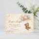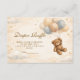 Soft, sweet, and timeless, this teddy bear baby shower design features a charming storybook bear holding a delicate balloon beneath a scalloped heirloom frame. The warm neutral palette of cream, soft blue, and gentle beige creates a cozy nursery-inspired aesthetic that feels both classic and elevated. Subtle gingham details and tiny star accents add a touch of vintage charm without overwhelming the layout. Perfect for a baby boy shower or a neutral celebration with a traditional, heartfelt feel.