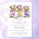 Celebrate the imminent arrival of your bundle of joy by inviting your friends and loved ones to your baby shower with this invitation featuring three adorable teddy bears wearing polka dot overalls playing jump rope.. The customizable text allows you to effortlessly add your name, date and time of the celebration, and the RSVP information. A variety of paper types and corner styles are available for your unique invitations, along with the option to download if you prefer a digital format.