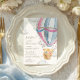 This menu features a soft hot air balloon teddy bear design and modern fonts. The script heading is an image that cannot be edited. All of the other text is fully editable. For more advanced customization of this design, simply select the "Customize It" button above.