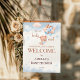 A sweet baby shower welcome poster featuring an adorable teddy bear holding blue and blush balloons with soft cloud and star details. The playful “We Can Berly Wait” phrase gives this watercolor design a warm and memorable look, perfect for greeting guests in style. A lovely choice for a baby boy shower, teddy bear theme party, or coordinated pastel event decor.