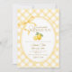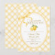 This darling lemon baby shower invitation combines a sweet yellow gingham plaid pattern with a charming lemon-centered oval and the beloved "We Can't Wait to Squeeze You" phrase. With its cheerful yellow palette and playful citrus theme, this invite is perfect for a summer lemon baby shower or any celebration that calls for a fresh, sunny, and stylish touch.