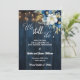 An elegant Wedding Anniversary Save the Date Card with elegant calligraphy completed by wonderful blue wood, garden string lights and white blue floral with gold glitter. You can personalize this card with your pre-Wedding Anniversary details.